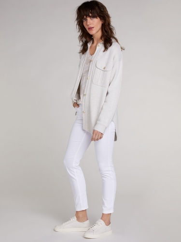 Футболка в нежной расцветке может быть самостоятельным верхом или надеваться под блейзер или жакет. Короткий втачной рукав, V-образный вырез горловины.