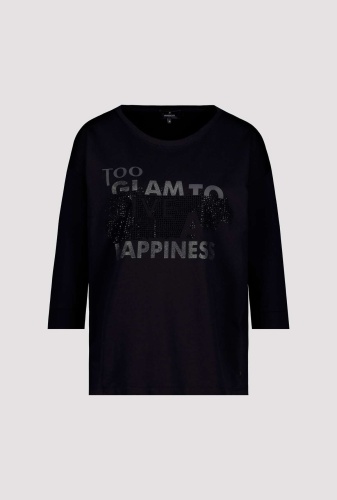 На сайте указаны российские размеры. Футболка из джерси с рукавами 3/4 и стразами. Форма: прямой крой с манжетами на концах рукавов и вставкой на круглом вырезе горловины. Высококачественная смесь хлопка и модала обеспечит комфорт в течение всего дня. Вы не должны обходиться без этого. Модель ростом 179 см.