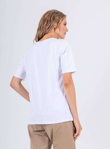 На сайте указаны российские размеры. Ткань: выполнена из гладкого хлопка высокого качества (95%) и эластана, добавляющего ткани упругости (5%) Крой: базовая модель освежающего белого цвета прямого силуэта. Имеет круглый вырез и втачной рукав-реглан. Футболка выполнена из гладкого, приятного телу хлопка, который дарит максимальный комфорт – не натирает и не раздражает кожу. Отделка: украшена оригинальным принтом с очаровательной зеброй на фоне саванны. Нанесение выдерживает множество циклов стирки, не выцветает и не трескается.