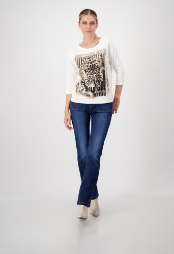Эластичная рубашка из струящейся смесовой вискозы обеспечивает комфорт и износостойкость. Спереди украшает крупный леопардовый принт со стразами и блестящими надписями. Длина 44 размера 64 см.