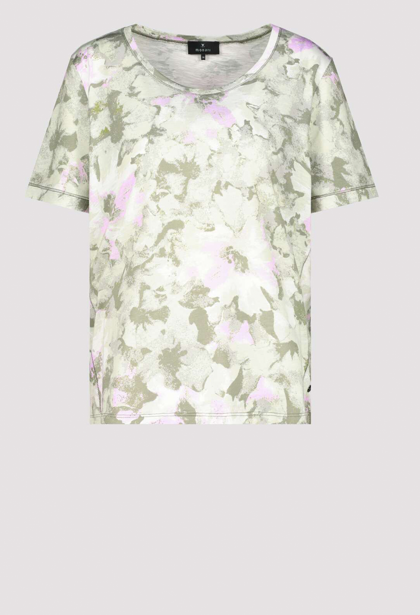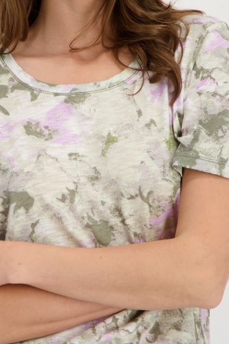 Эта мягкая футболка со стильным цветочным узором имеет усовершенствованный боковой шов. Высококачественная смесь хлопка. Регулярная посадка. Круглый вырез. Короткий рукав. Длина 44 размера 62 см.