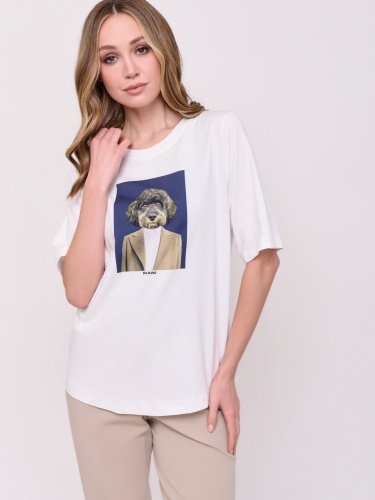 Детали: вырез горловины округлый, покрой прямой, рисунок принт, без надписи, боковые разрезы. Длина по спинке: 62 см.