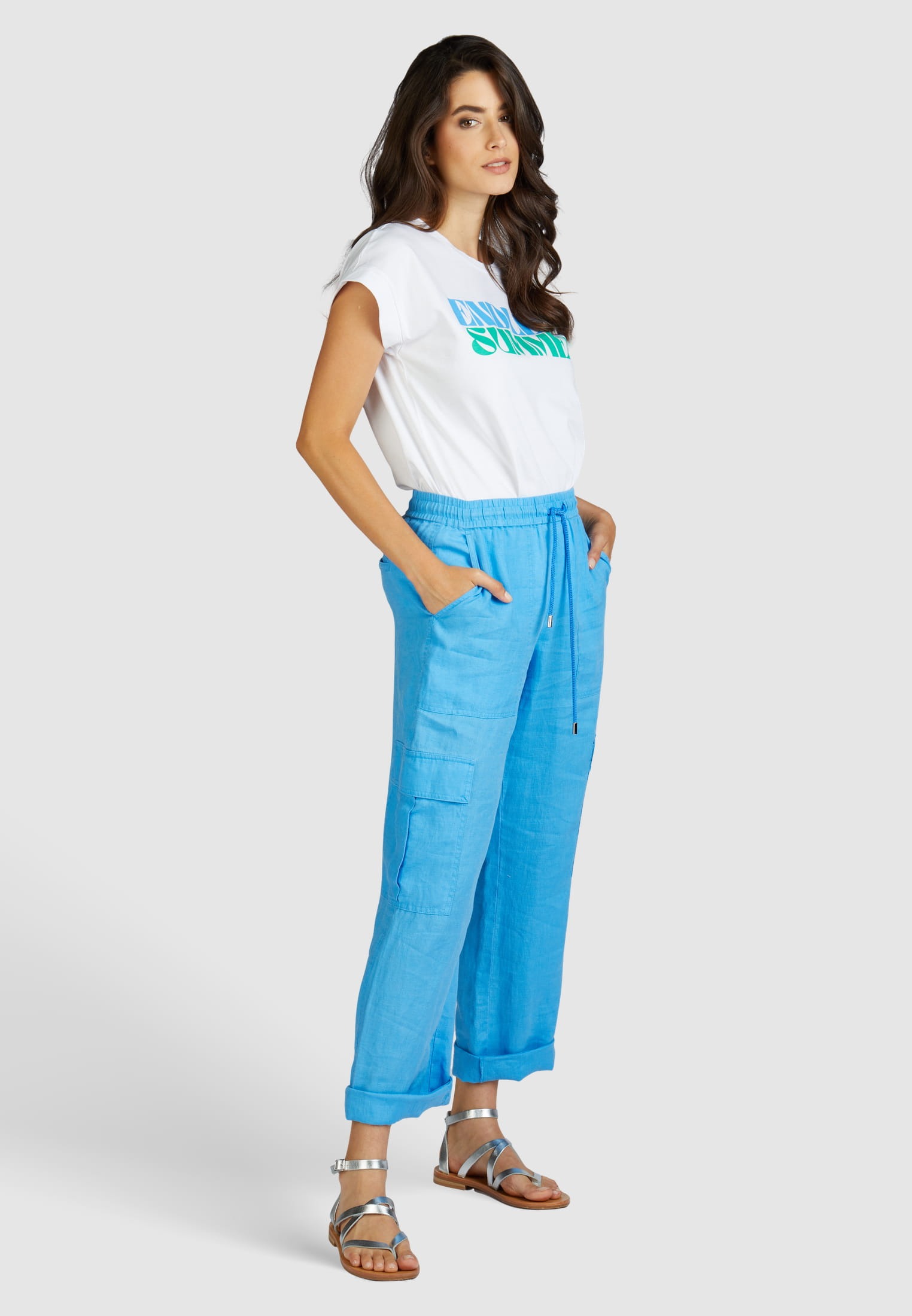 Лето никогда не должно заканчиваться, согласно этой футболке с принтом «Бесконечное лето». Изготовленное из высококачественного хлопкового трикотажа с добавлением хлопка Better Cotton Initiative, оно символизирует экологичность моды. Модный свободный крой идеален для теплых летних дней.