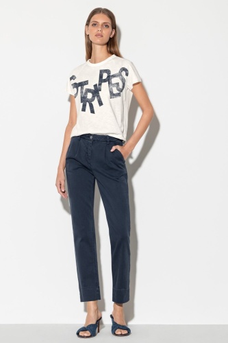Футболка спортивного стиля повседневного силуэта с короткими рукавами реглан. Дизайн дополнен привлекательной надписью спереди и слегка закругленными краями.
