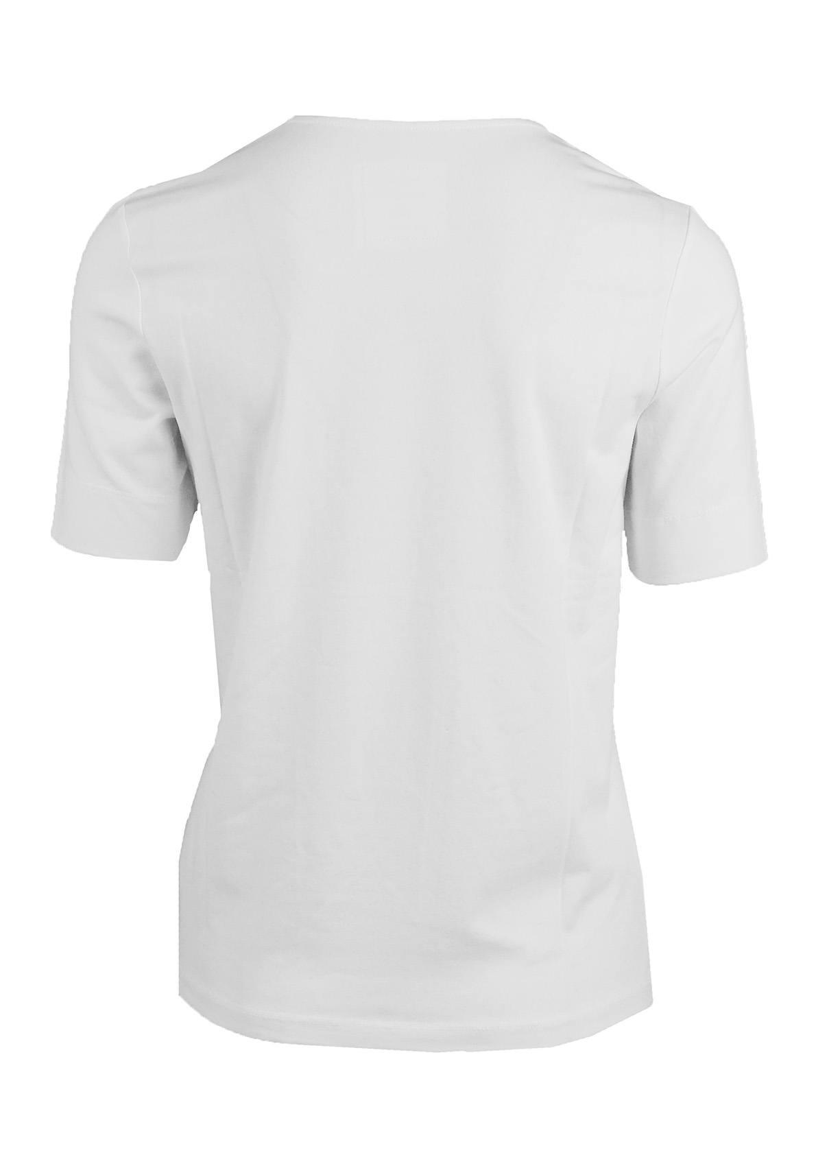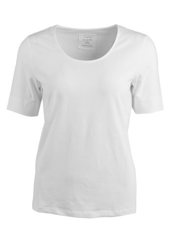 Эта классическая футболка с рукавом 1/2 и круглым вырезом горловины предоставляет широкий спектр возможных комбинаций. Данная модель сочетает в себе безупречный дизайн с удобным покроем. Высококачественная ткань из смеси хлопка и эластана обеспечивает комфорт в ношении и сохраняет форму даже после стирки! Благородную базовую футболку можно сочетать с легким кардиганом или элегантным блейзером.