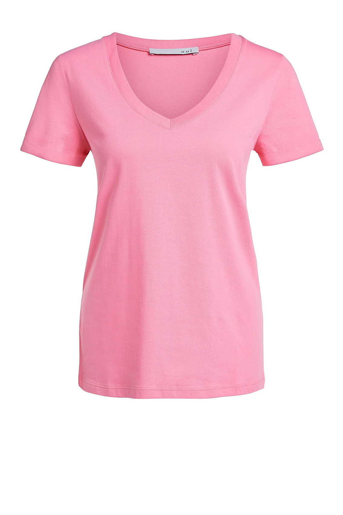 Базовая однотонная футболка сочетается с любыми вещами и является необходимым элементом современного гардероба. Прямой покрой, V-образный вырез горловины, короткие втачные рукава. Приятный к телу хлопковый материал обеспечивает комфорт в ношении.