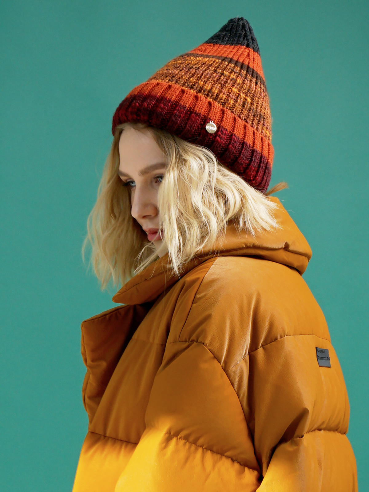 Вязаная шапка в насыщенном оранжевом оттенке добавит акцент в образ. Материал из смесовой шерсти хорошо сохраняет тепло и держит форму. Украшение в виде металлического лейбла.
