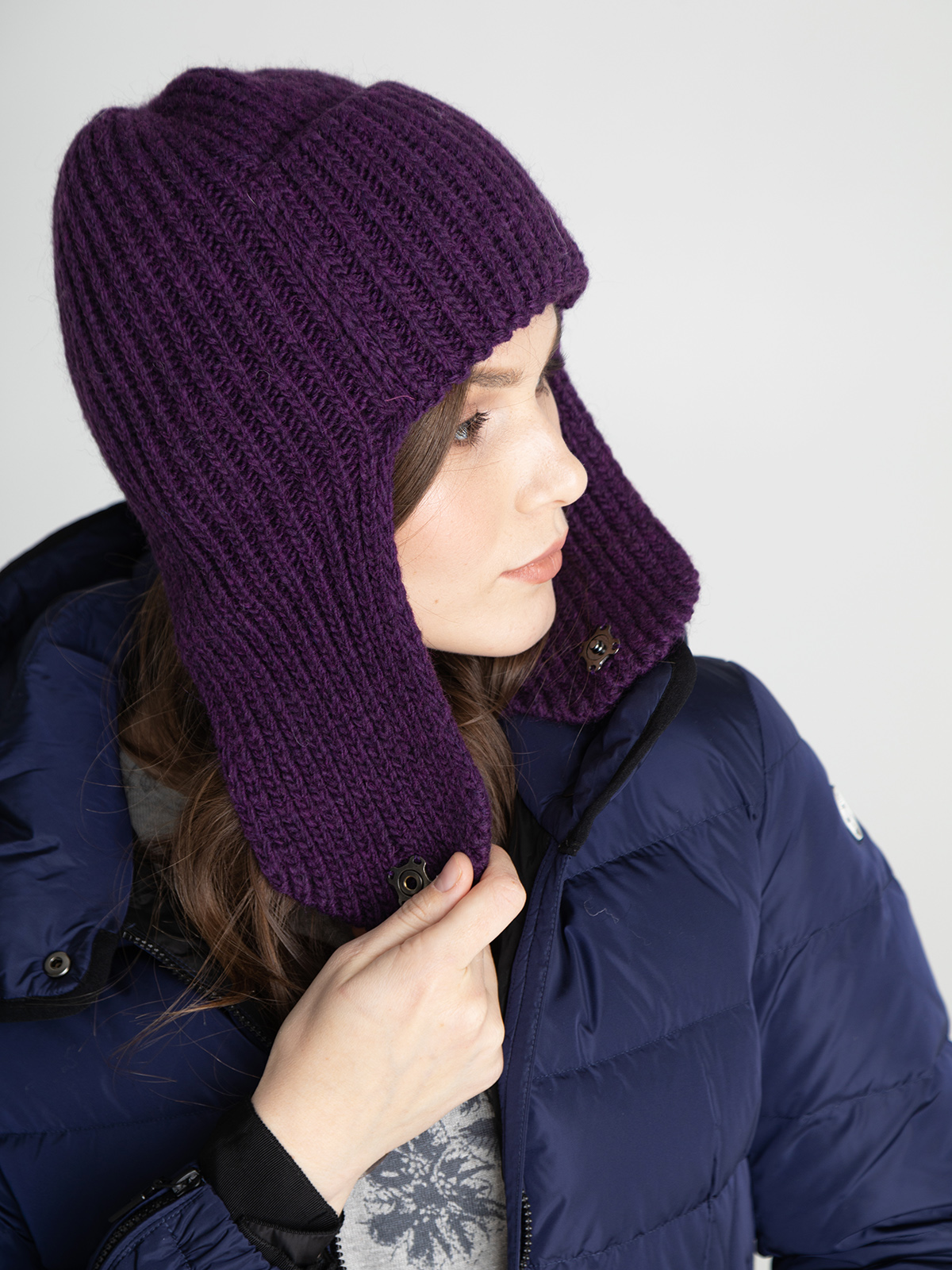 Однотонная вязаная ушанка – тренд сезона! Оригинальный фасон добавит динами образу. Подходит для любого типа лица. Материал из смесовой шерсти с добавлением шерсти альпаки хорошо сохраняет тепло и приятен на ощупь.