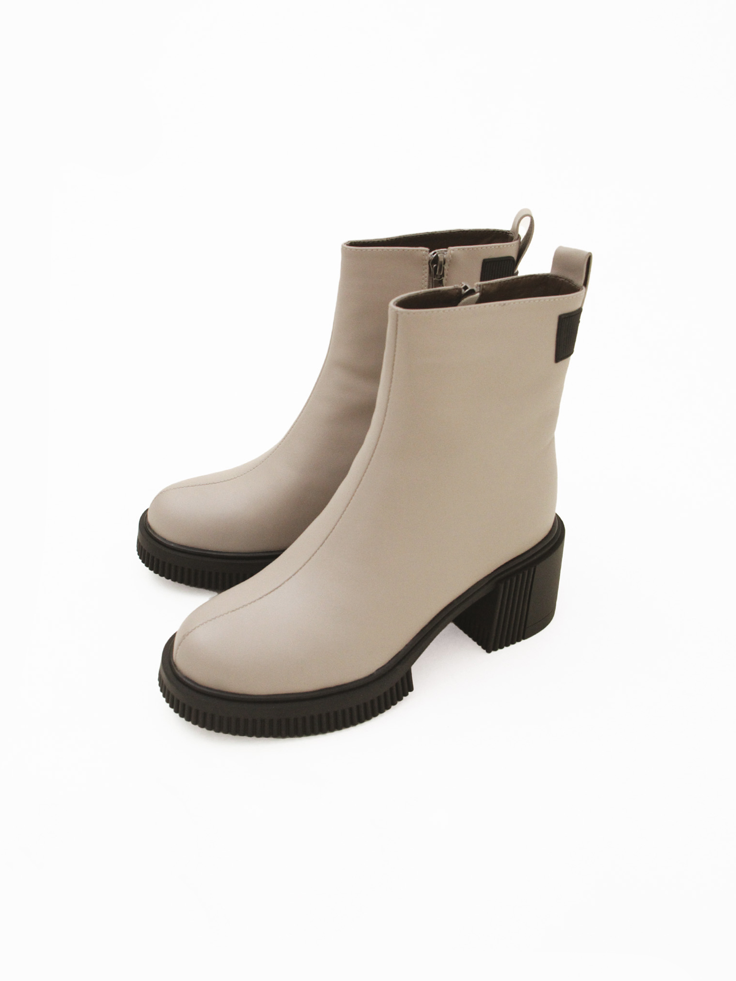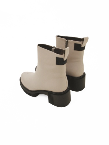 Демисезонные ботинки на толстом устойчивом каблуке и небольшой платформе. Верх полусапожек выполнен из натуральной кожи бледно-бежевого цвета. Обувь утеплена натуральным мехом.