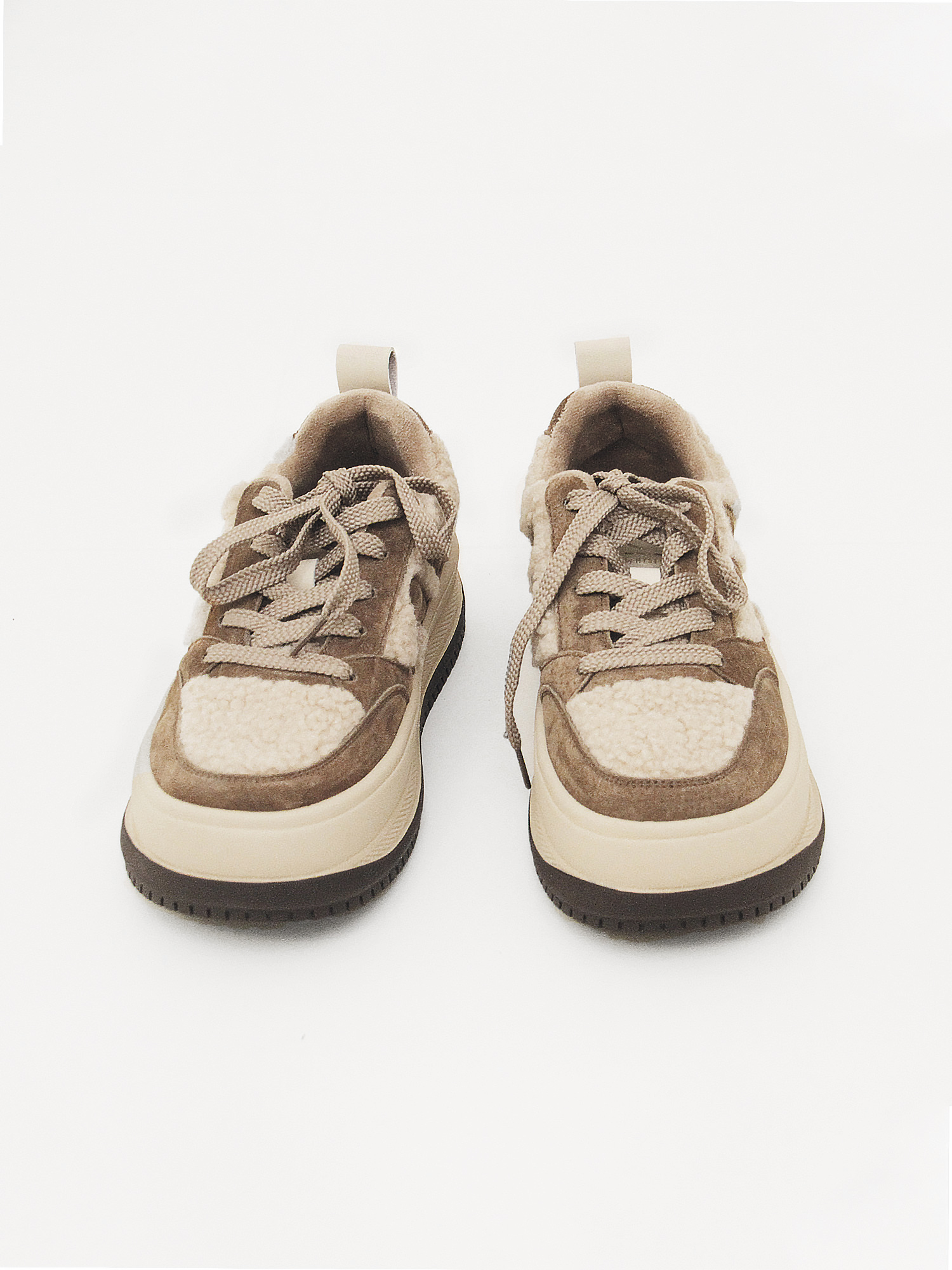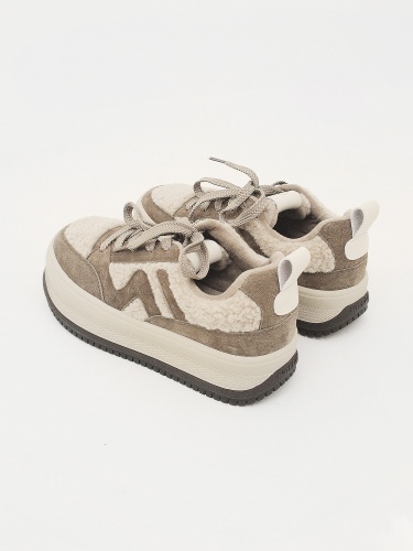 Женские демисезонные кеды с декоративным мехом. Полуботинки выполнены из натуральной кожи. Подкладка из байки.