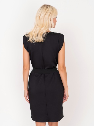 Черное мини-платье прямого кроя – универсальный вариант для любого повода – в офис, на встречу, вечернее мероприятие. Круглый вырез горловины, рукава отсутствуют.