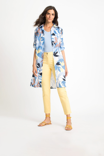 Эффектный и трендовый цветочный принт с изображением пальм по всей поверхности придает этому легкому платью тропический вид. Планка с пуговицами спереди позволяет носить это платье в закрытом или расстегнутом виде как длинную плащевую накидку поверх простой футболки или майки для повседневного образа. Имеет классический отложной воротник, закатанные рукава ¾, потайные боковые карманы и слегка закругленный низ. 100% хлопок обеспечивает комфорт, воздухопроницаемость и долговечность.