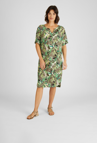 Платье-рубашка с узором из пальмовых листьев — это модный и удобный предмет гардероба для женщин. Классический круглый вырез горловины с небольшим V-образным вырезом, слегка подчеркивающим декольте. Рисунок платья вдохновлен тропическими пальмовыми листьями, напечатанными на легкой и дышащей вискозной ткани. Это платье идеально подходит для самых разных случаев, от повседневных дел в офисе до расслабленных мероприятий на выходных. Сочетайте его с босоножками и сумкой, чтобы создать простой и легкий образ. Независимо от того, как вы его носите, это платье-рубашка станет удобным и стильным вариантом.