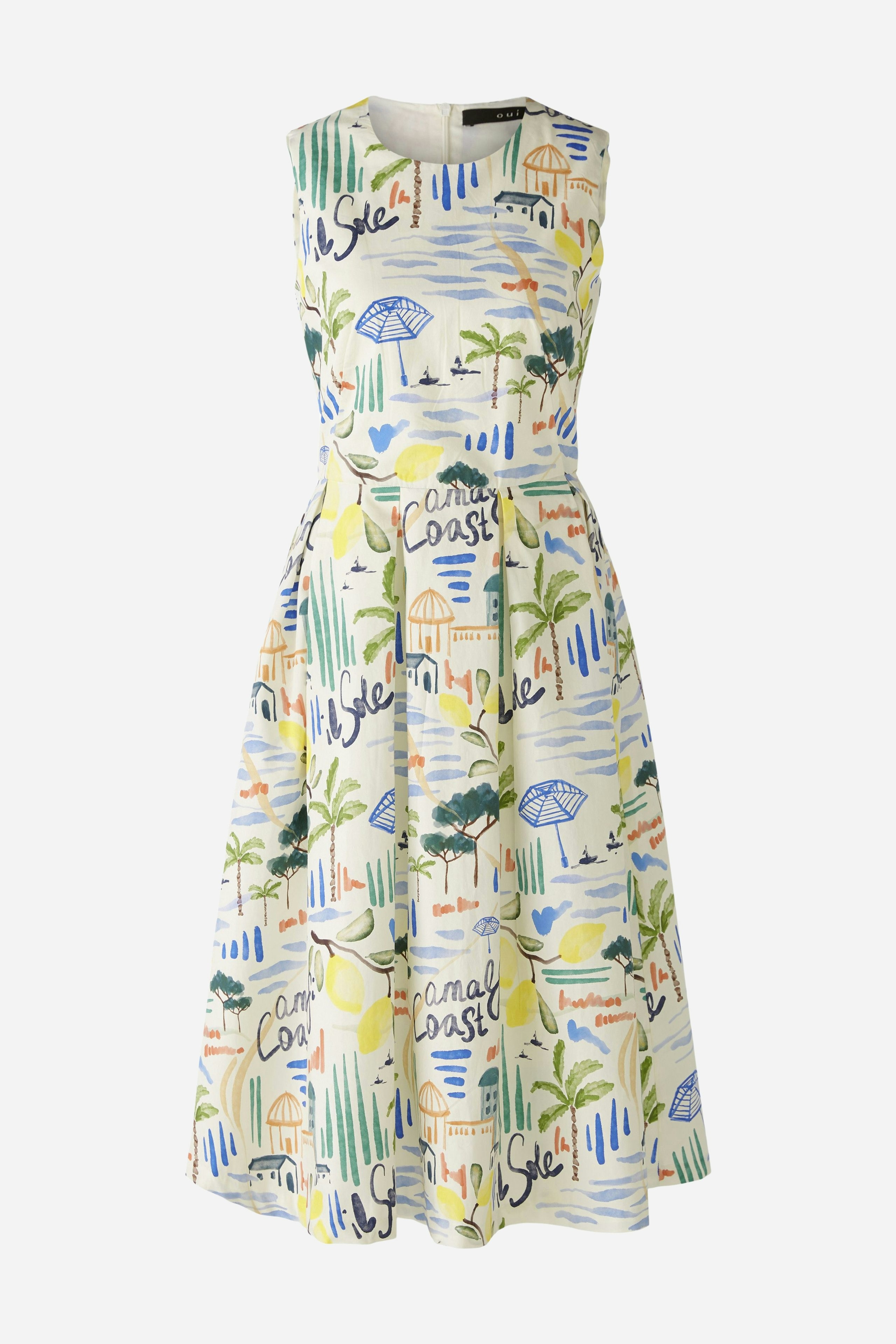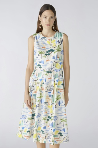 Это летнее платье - эксклюзивный принт oui, вдохновленный типичной атмосферой отдыха на ривьере. Чистый хлопок, принт по всей поверхности. Приталенный топ в сочетании с расклешенной юбкой. Круглый вырез горловины с мелкошовной молнией сзади. Верх полностью на подкладке. Два боковых кармана. Длина для размера 42: 118 см.
