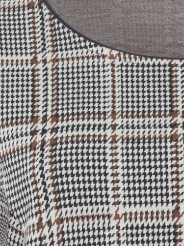 Клетчатое платье миди подойдет для повседневного или делового образа. Полуприталенный силуэт, овальный вырез горловины. Втачной рукав 3/4 с манжетами.