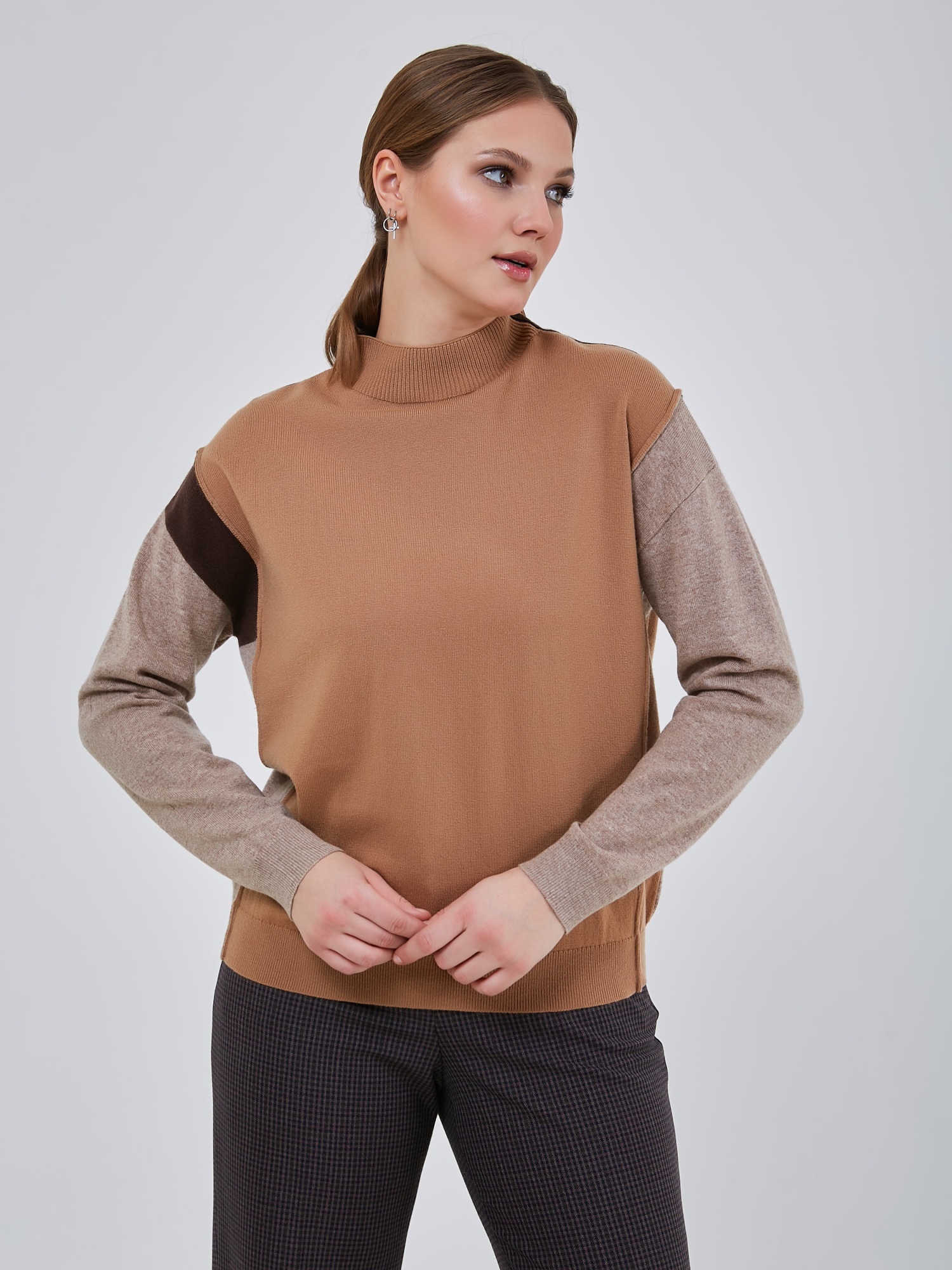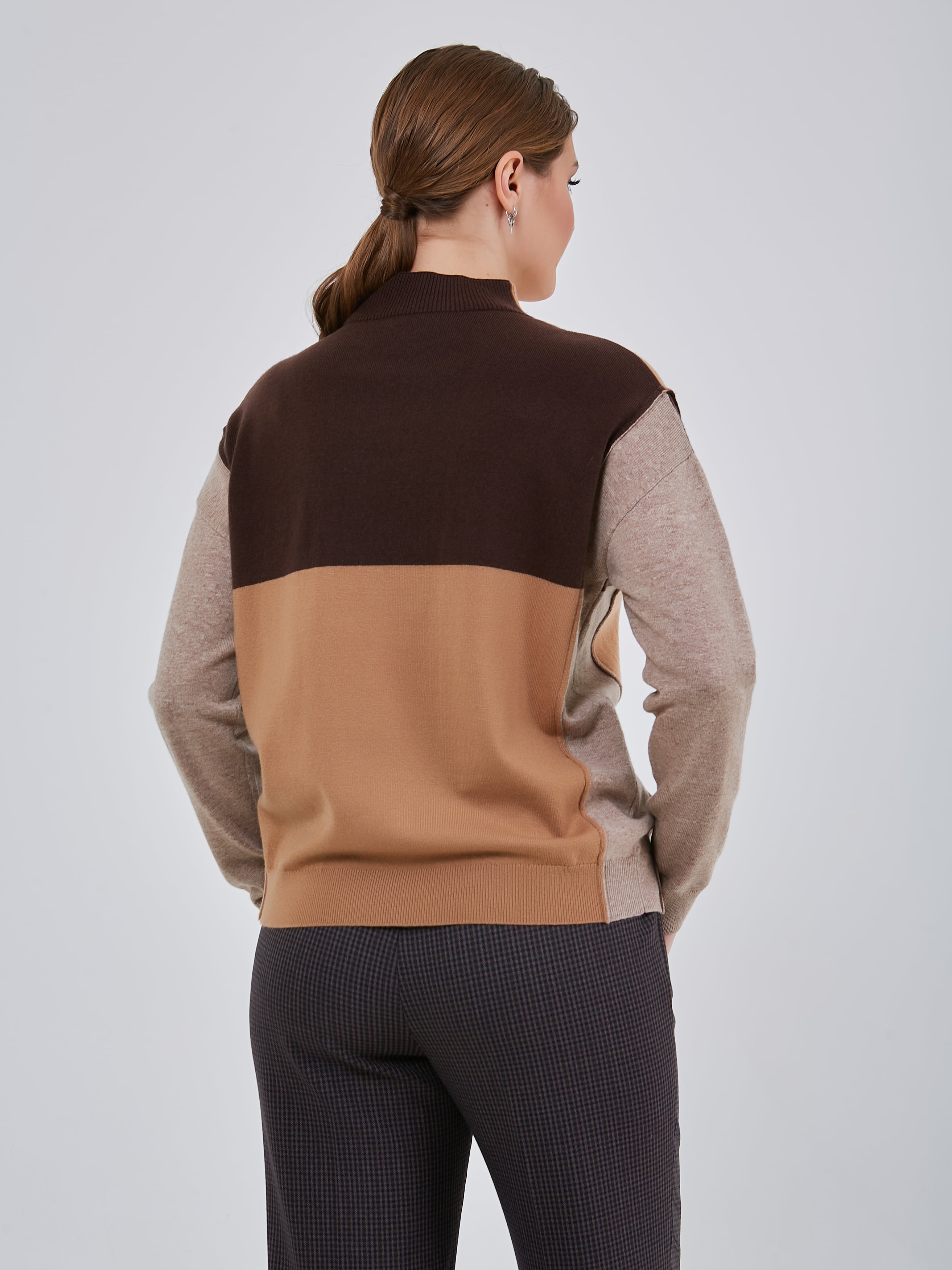 Джемпер с ассиметричным цветовым решением. Воротник- стойка эластичной вязки.Осень-Зима'25/26. Капсула "Вино из одуванчиков"