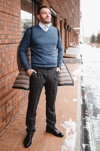 Куртка из натуральной кожи с утеплителем. Наполнитель 90 % пух, 10 % перо. Капюшон куртки оторочен мехом. Молния спереди закрыта ветрозащитной планкой на кнопках. Нашивка на рукаве. Рукава куртки оформлены манжетами. Прорезные карманы на передней части изделия. Лямки с внутренней стороны куртки.