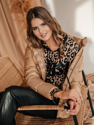 Пуховая куртка - идеальный зимний вариант для тех, кто ведет активный образ жизни! Прямой крой, воротник-стойка, капюшон на кулиске, застежка-молния закрыта ветрозащитной планкой на кнопках, карманы на молниях.