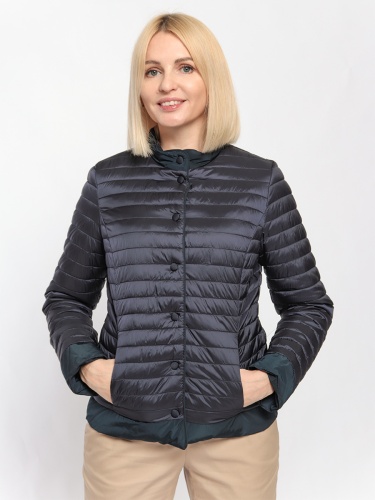 Стеганая куртка на кнопках идеально подойдет для межсезонья. Детали: - воротник-стойка на кнопке, - длинный втачной рукав с манжетой, - застежка на кнопки, - на стеганой стороне - 2 боковых кармана на кнопке, - на обратной стороне - 2 накладных кармана на кнопке.