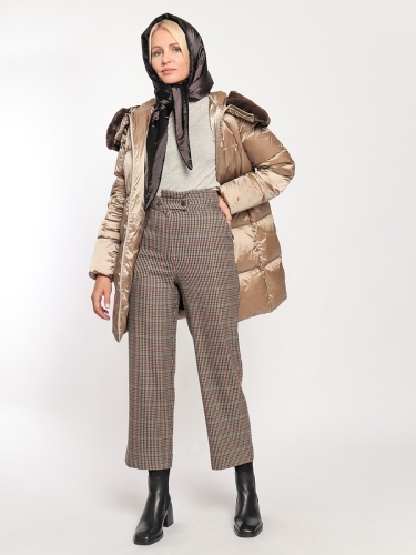 Стеганая зимняя куртка с пуховым наполнителем. Универсальная модель дополнит любой наряд. Воротник стойка со съемной меховой оттелкой, капюшон на молнии. Застежка на двустороннюю молнию. Два боковых кармана на молнии.