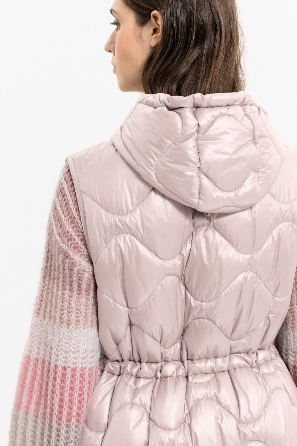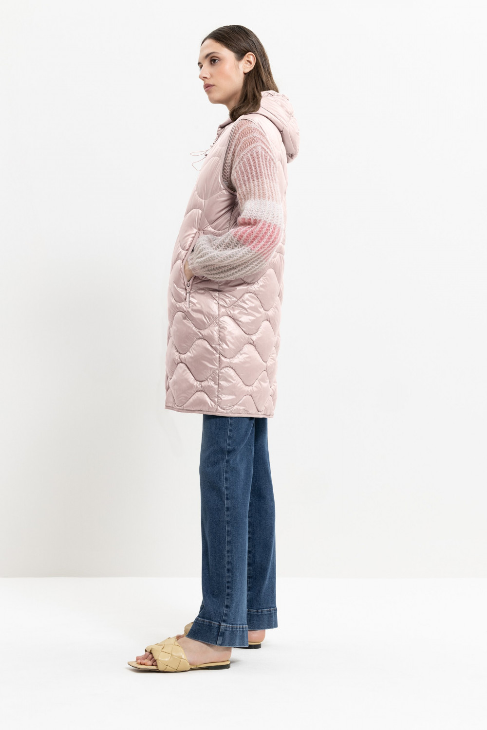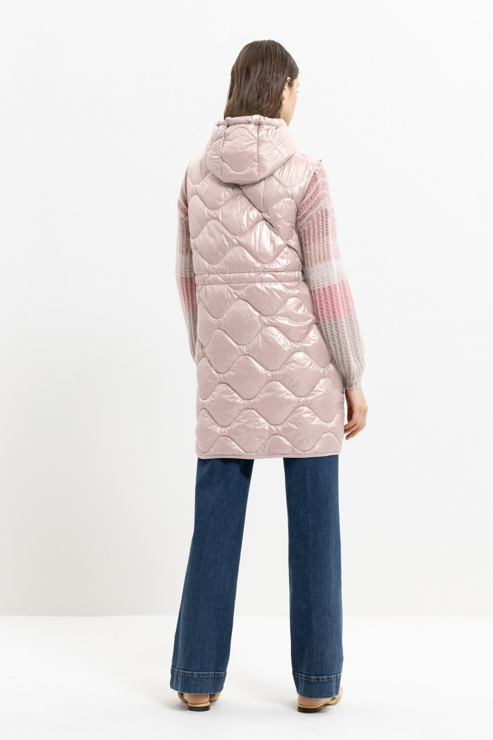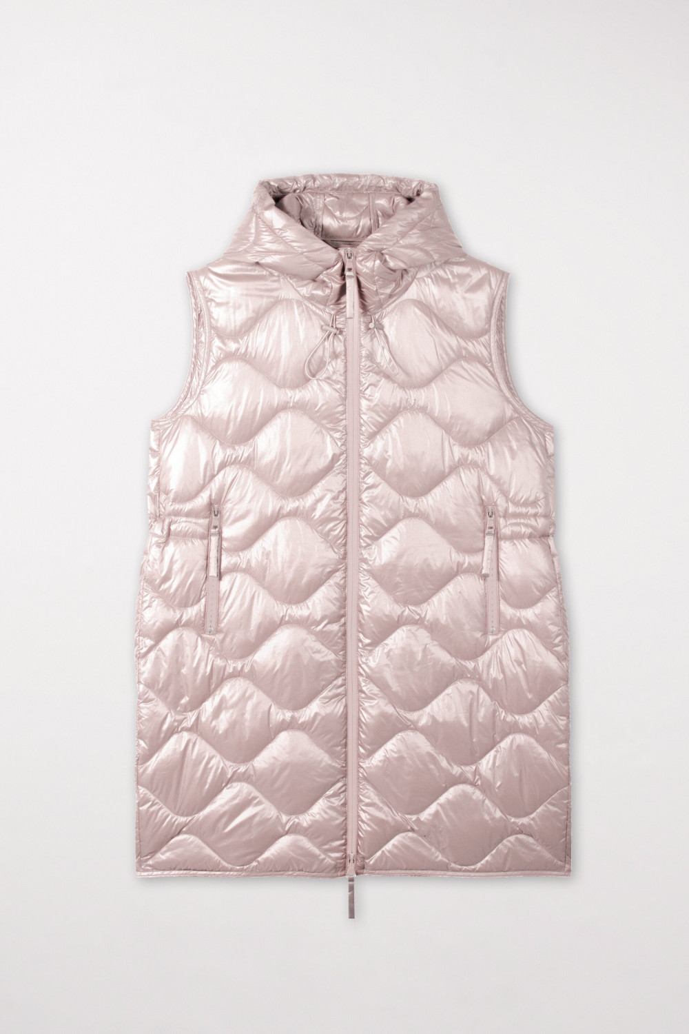 На сайте указаны российские размеры. Длинный жилет из нейлона для активного отдыха с эффектом легкого пуха с высокофункциональным утеплителем 3M Thinsulate™ без перьев и потайной двусторонней молнией спереди. Капюшон на подкладке регулируется шнурком. Модель ростом 178 см.