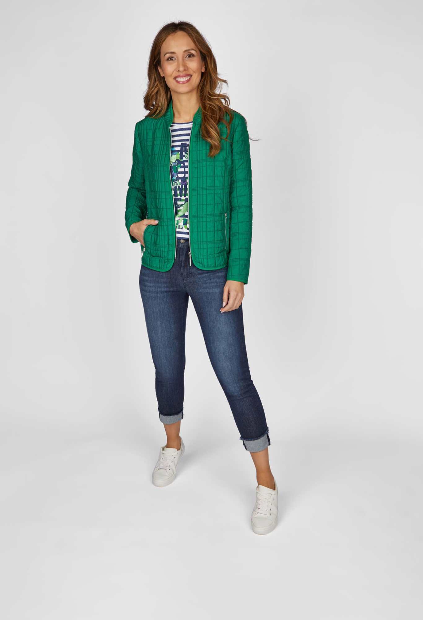 Легкая куртка со структурированной поверхностью – стильный предмет одежды, сочетающий в себе функциональность и модный дизайн. Небольшой воротник-стойка придает элегантный вид. Длинные рукава обеспечивают дополнительный комфорт и тепло в прохладные дни. Практичная молния позволяет легко надевать и снимать куртку, ее можно открыть или закрыть по мере необходимости. Также есть два кармана на молнии. Длина спинки от плеча для 44 размера: 62см.