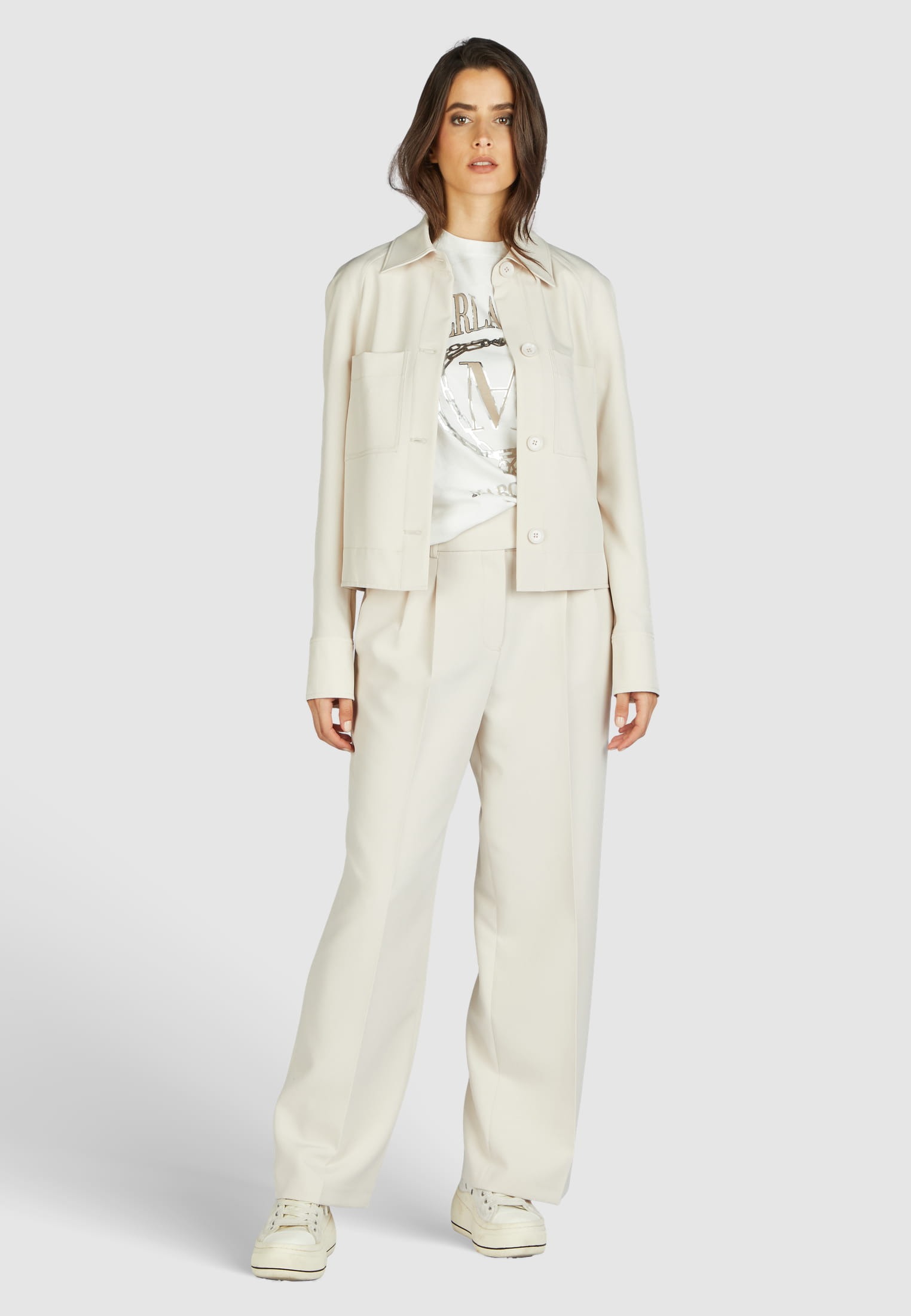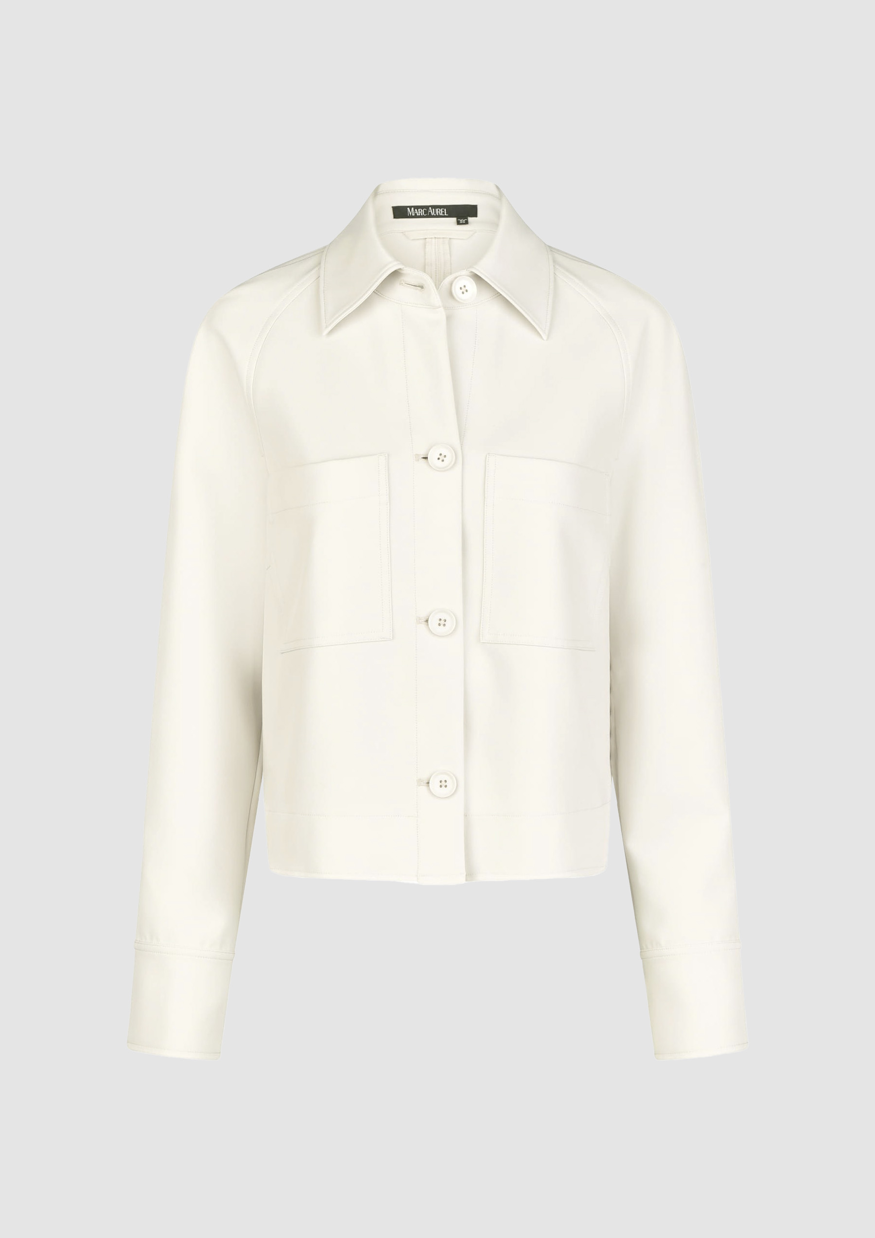 Элегантная куртка-рубашка из мягкой, легкой в уходе ткани. Воротник рубашки и накладные нагрудные карманы придают повседневному H-образному силуэту четкую структуру. Классическая планка на пуговицах и манжеты с разрезами подчеркивают прямой дизайн.