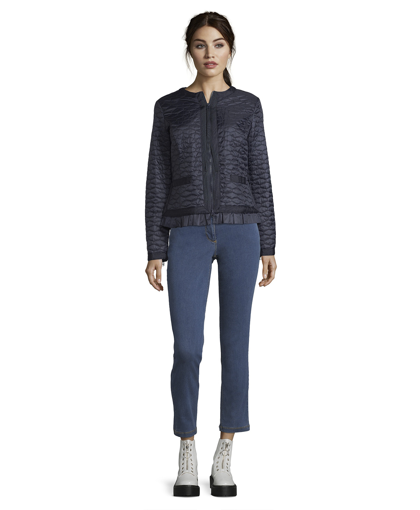 Легкая куртка-ветровка. Застежка-молния, круглый вырез горловины. Декоративный элемент дизайна - волан по низу изделия. Добавьте шейный платок, чтобы составить с этой курткой элегантный и женственный образ.