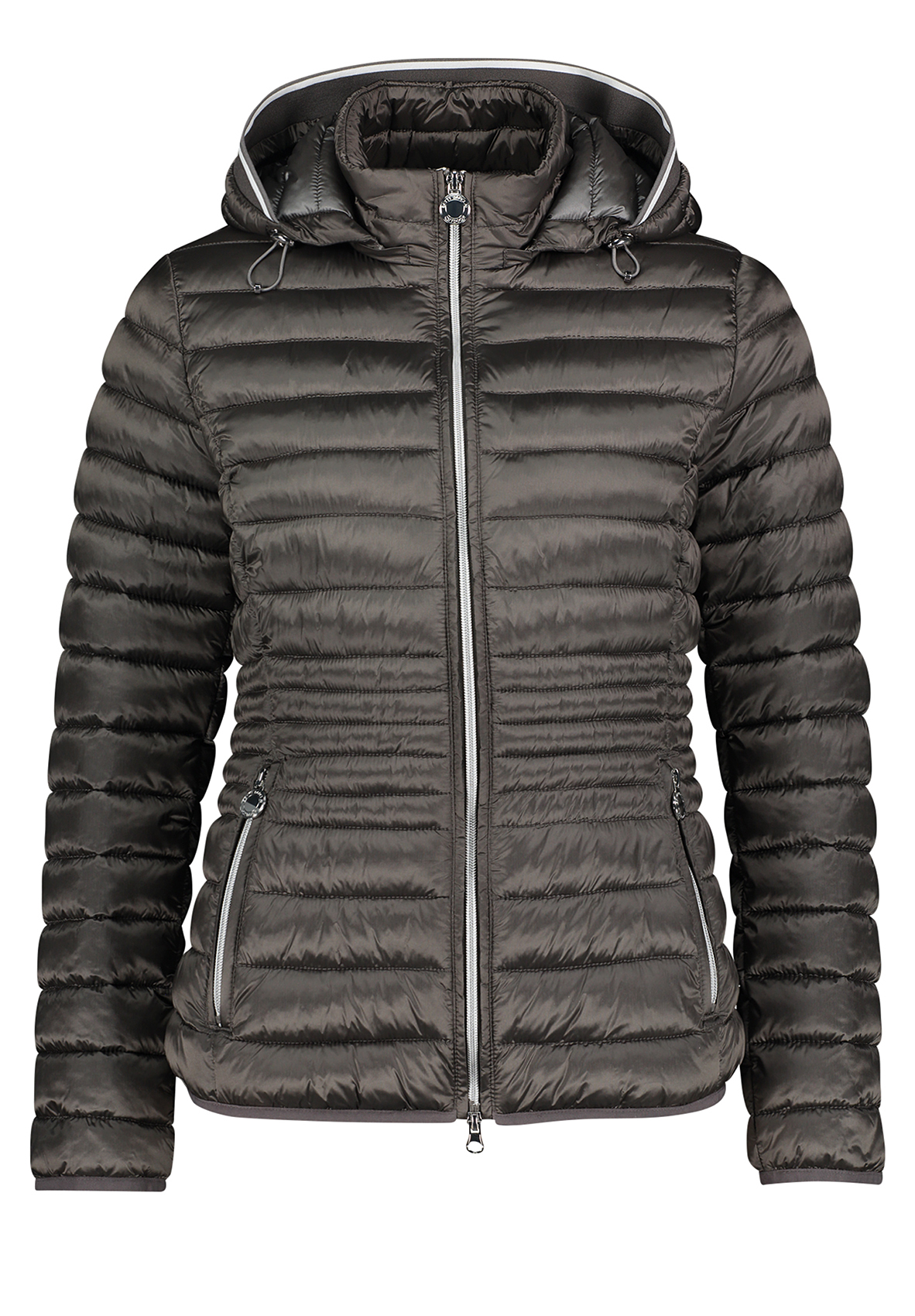 Куртка на облегченном синтепоне - то, что нужно для демисезона! Слегка прилегающий силуэт, практичный воротник-стойка, съемный капюшон на кулиске, удобная двойная застежка-молния, карманы на молниях.
