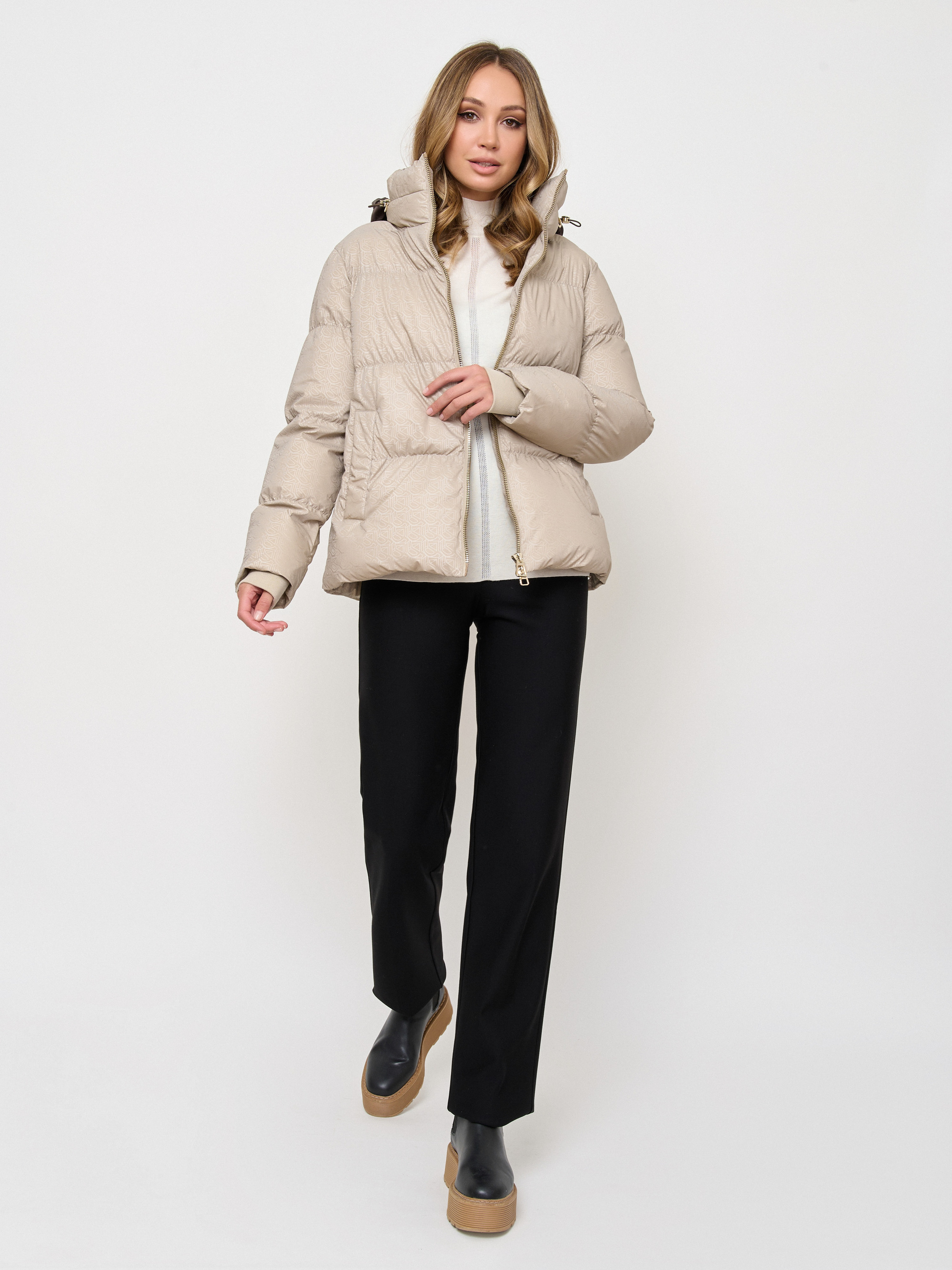 Укороченный пуховик с наполнителем DuPont Sorona (био-пух) предназначена для температурного диапазона от 0°C до -15°C. Ткань верха - 100 % полиуретан с нанесением силиконового принта; подкладка - классический 100% нейлон цвета dusty brown; утеплитель - cинтепух DuPont Sorona (100% полиэстер). Детали: застежка молния, опции капюшона капюшон прячется в воротник, рукава длинные, покрой прямой, рисунок орнамент, утеплитель полиэстер, карманы прорезные, без опушки.