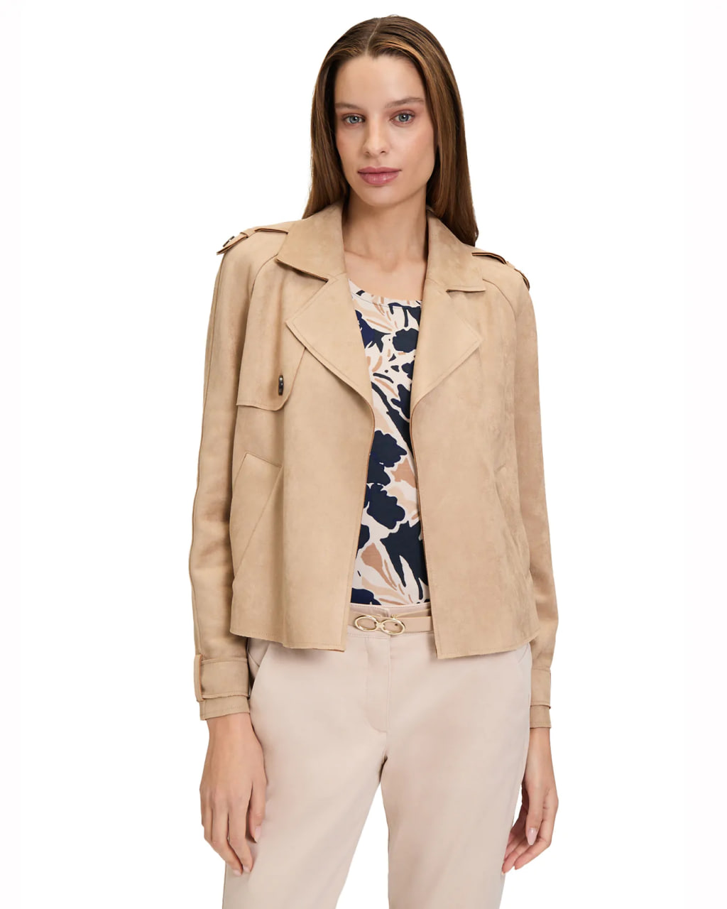 Свободная куртка-жакет Betty Barclay бежевого цвета. Укороченная модель с отложным воротником, без застежки, имеются врезные карманы по бокам. Стильная куртка-жакет станет фаворитом вашего гардероба.