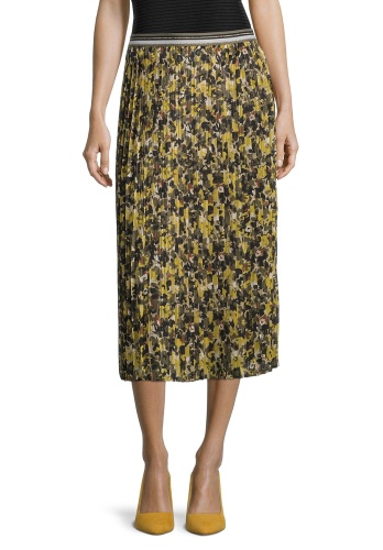 Плиссированная юбка миди - звезда модных подиумов! Принт с цветочными мотивами подчеркивает женственность обладательницы юбки. Завершает модный дизайн эластичный пояс с блестящей нитью люрекса.