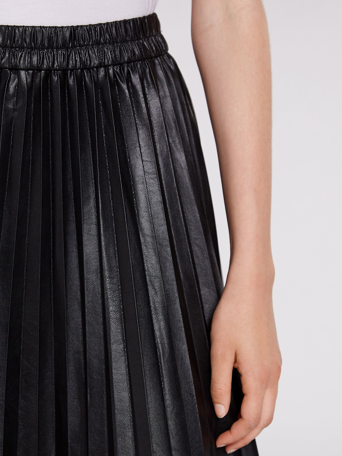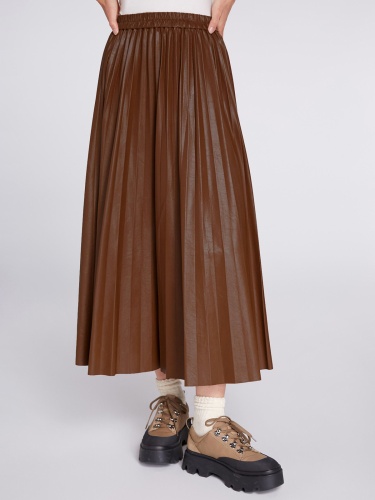 Плиссированная юбка из экокожи в актуально длине миди. Расклешенный A-силуэт. Эластичный пояс обеспечивает комфортную посадку по естественной линии талии. Длина 80 см для размера 42. Рост модели 178 см, ее размер – 42 (российский).