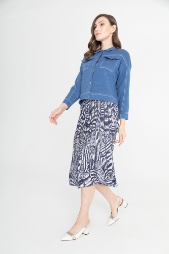 На сайте указаны российские размеры. Ткань: вязаная юбка выполнена из вискозы с добавлением нейлона. Крой: на 100% женственная, вязаная фактурная юбка из вискозы создает настроение праздника даже в будни. А-силуэт, расклешенный книзу, прекрасно уравновешивает фигуру и корректирует особенности, например, широкие бедра. Завышенный пояс-резинка не только подчеркивает стройность талии, но и добавляет демократичности и свободы изделию – юбку легко надевать. Второй элемент одежды можно заправлять внутрь или носить поверх. Отделка: оригинальный принт, имитирующий складку – лучшее украшение юбки, не требующее дополнительных деталей. Вертикальная полоса делает силуэт стройным и подтянутым. Юбка представлена в двух стильных оттенках. К ней можно подобрать аналогичный по цвету и фактуре джемпер, тем самым, получив полноценный костюм. Джемперы находятся в соответствующем разделе на сайте.