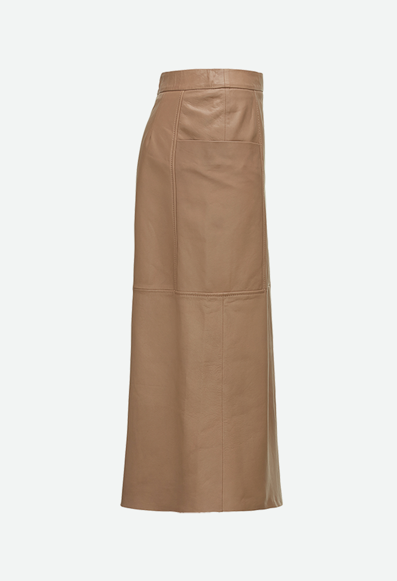 На сайте указаны Российские размеры. Юбка А-силуэта длиной до колена из мягкой гладкой кожи наппа с двумя прорезными карманами справа и слева привлекает внимание. Коробчатая складка на спине обеспечивает комфортную свободу движений. Сочетайте его со струящимися блестящими топами, чтобы создать изысканный образ, или с тонким трикотажем, чтобы создать более повседневный образ. Рост модели на фото - 176 см