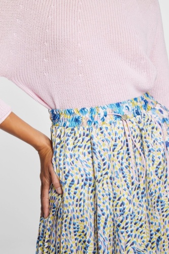 Яркое сочетание узоров сделает эту плиссированную юбку изюминкой вашего летнего гардероба. Струящийся материал слегка блестит и соблазнительно играет вокруг ваших ног. Эластичный пояс обеспечивает комфорт в течение всего дня. Длина для размера 42: 82 см.