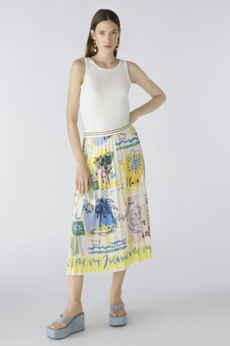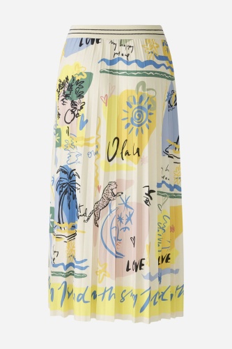 Юбка-миди качества silky touch – струящаяся и плиссированная. Струящаяся, не мнущаяся, шелковистая на ощупь ткань с высоким содержанием эластана. А-образный силуэт, длина миди. Удобный эластичный пояс для легкого и несложного надевания. Размещенный сплошной принт. Чемоданы не мнутся, не требуют глажки. Длина для размера 42: 77 см.