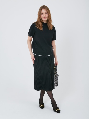 Шелковистая плиссированная юбка глубокого чёрного цвета. Зрительно вытягивает силуэт и отлично сочетается с любым стилем. Осень-Зима'25/26. Капсула "Малахитовая шкатулка"