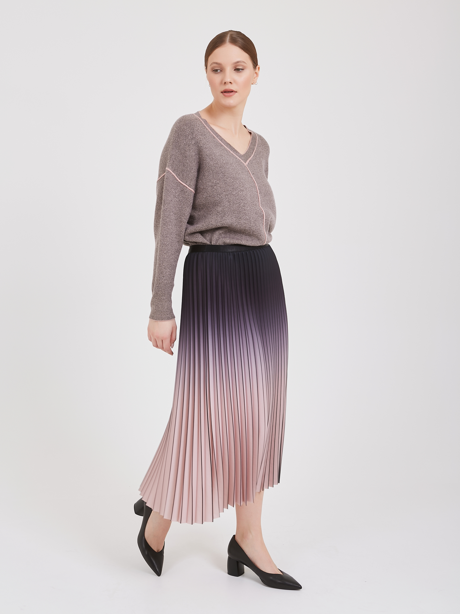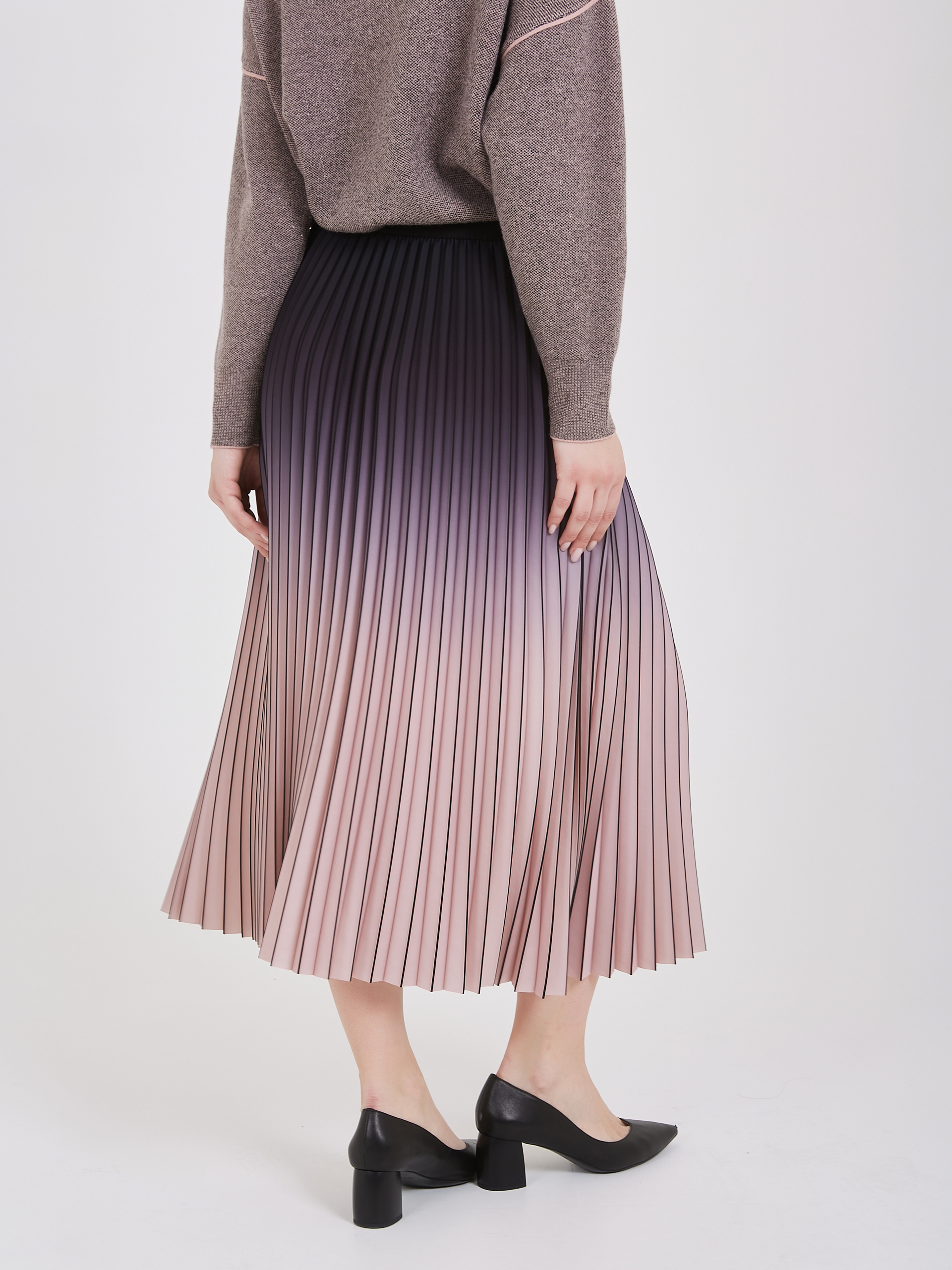 Эта юбка с градиентом от черного у талии до светло-розового к низу сочетает в себе элегантность и современность. Плиссировка с вертикальными складками добавляет объем и динамику, создавая стильный и универсальный образ. Осень-Зима'25/26. Капсула "Лиловый шар"
