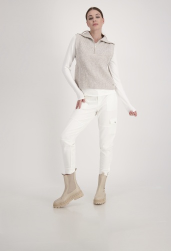 На сайте указаны российские размеры. Трикотажный жилет с застежкой-молнией и тройным воротником. Безрукавка имеет широкик манжеты на несуществующих концах рукавов. Трикотажный комбинезон из мягкой шерсти гарантирует непревзойденный комфорт. Незаменимая вещь в каждом гардеробе! Модель ростом 179 см. Длина спины 44 размера составляет 62 см.