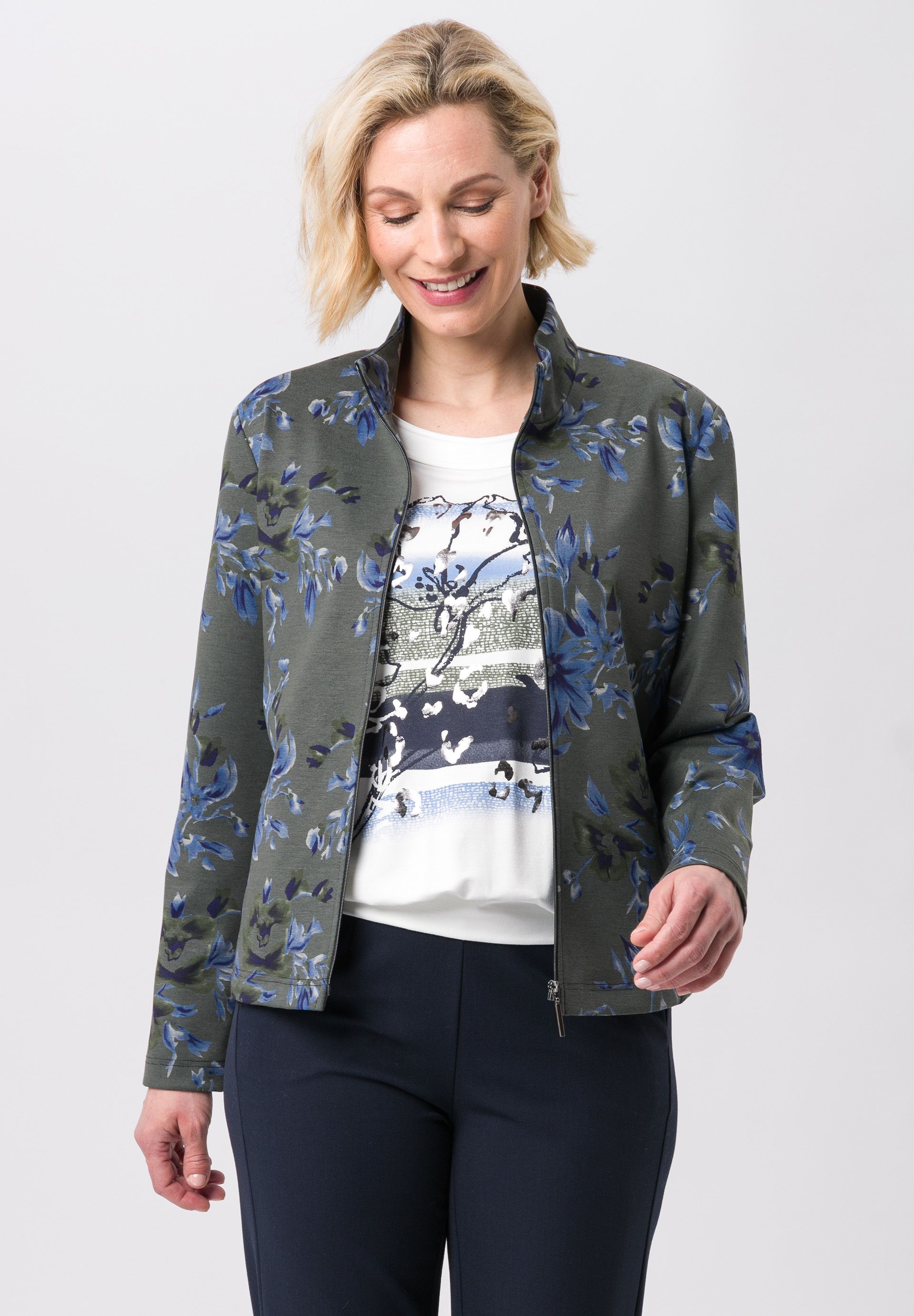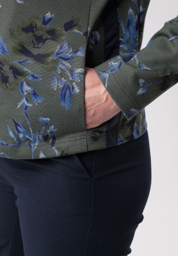 На сайте указаны российские размеры. Легкая женский жакет с молнией и боковыми карманами. Современный легкий жакет из удобного трикотажа обеспечивает уверенность в стиле и оптимальную свободу движений. Гармоничный по цвету дизайн подчеркивает женственный образ. Спортивные контрастные полосы по бокам расставляют модные акценты. Пояс-стойка, карманы в швах и современная односторонняя молния.